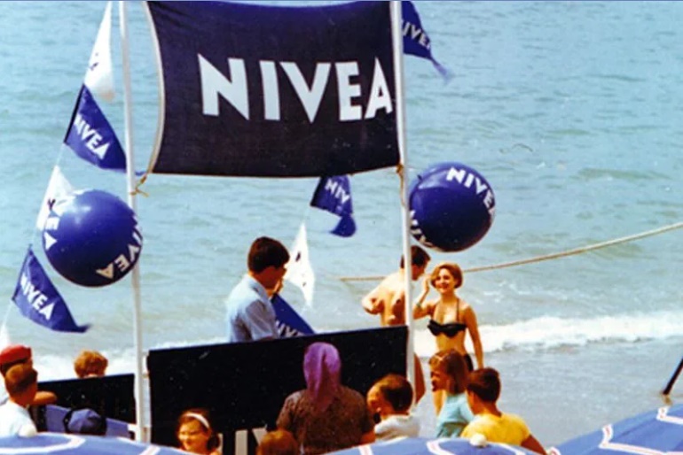 니베아는 파란색과 하얀색의 조화로 단순하게 포지셔닝했다. 물론 처음부터 사람들에게 각인된 건 아니다. 이때 니베아는 무척 인상적인 방법을 쓴다. 1950년대부터 1960년대까지 세계적인 경제 성장이 지속되며 바캉스 같은 야외 활동이 크게 늘었는데, 이때 야외 활동에 적합한 ‘니베아 볼’을 광고용 소품으로 등장시킨 것이다. 이 공은 제품을 사면 사은품으로 받을 수도 있었다. 인기가 어마어마해 전 세계 해변에서 흔히 볼 수 있을 정도였다고 한다. 그렇게 니베아는 볼의 시그니처 컬러를 가지고 브랜드 이미지를 굳히는 데 성공했다.